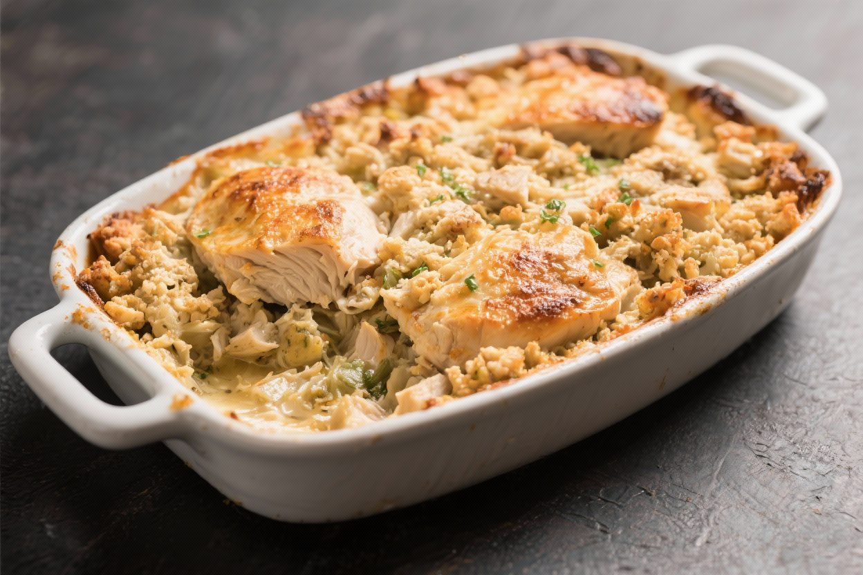 This casserole delivers a balanced mix of protein from the chicken and carbohydrates from the stuffing, which makes it satisfying and steady on energy.