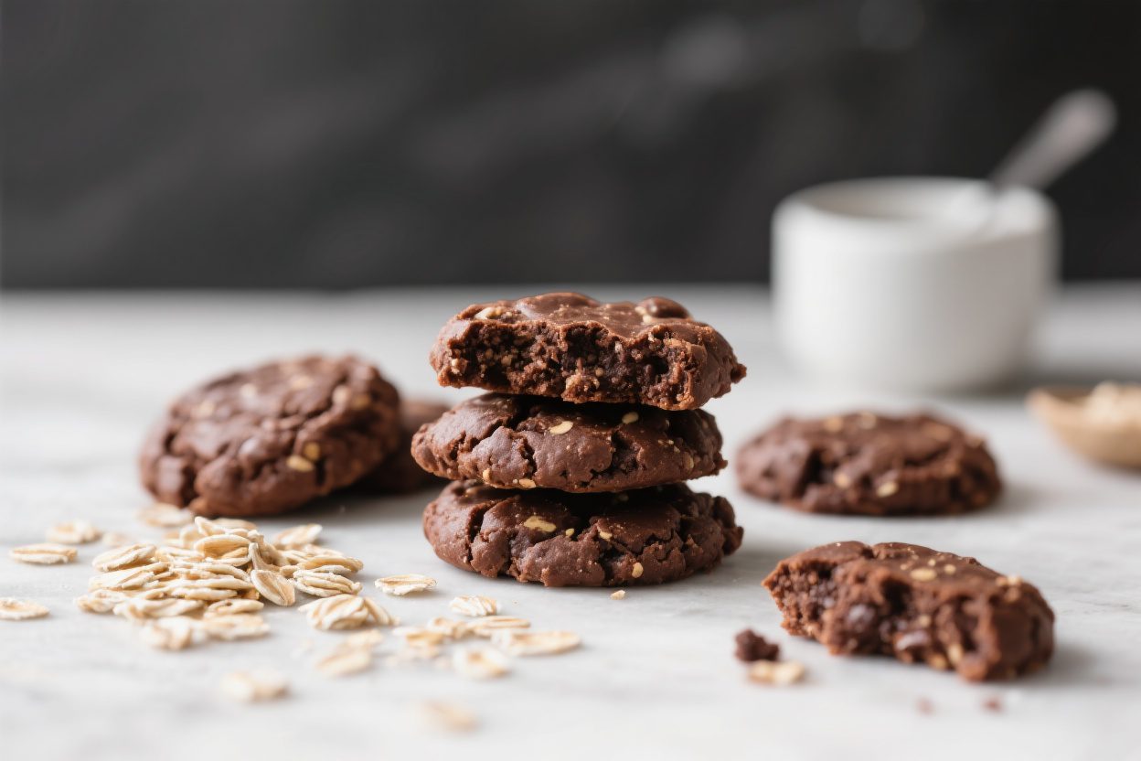 The peanut butter adds creaminess and structure, keeping the cookies soft but not crumbly. Rolled oats bring texture and a hearty bite without needing to bake. The result is a cookie that’s sweet, chocolatey, and ready in minutes.